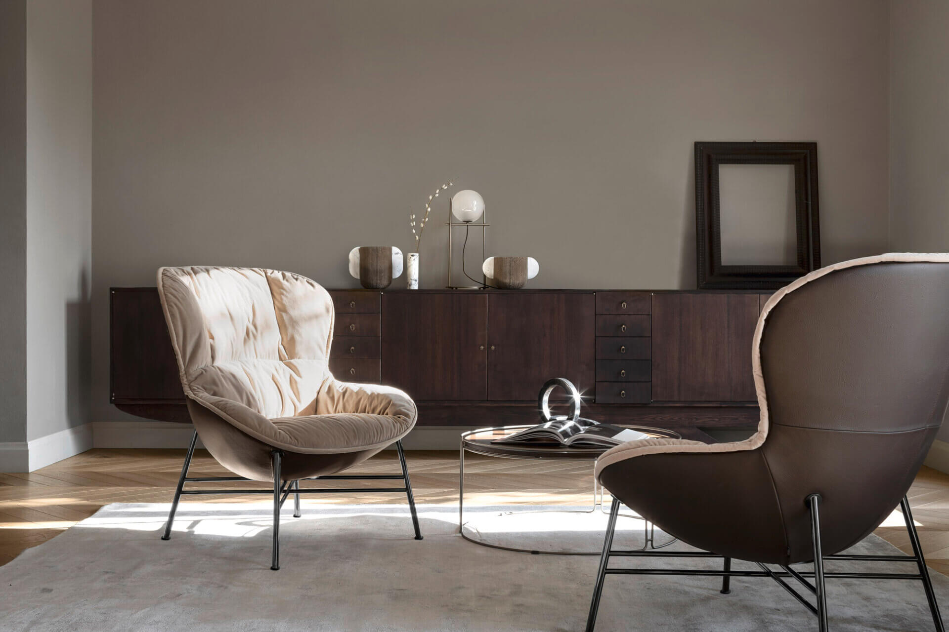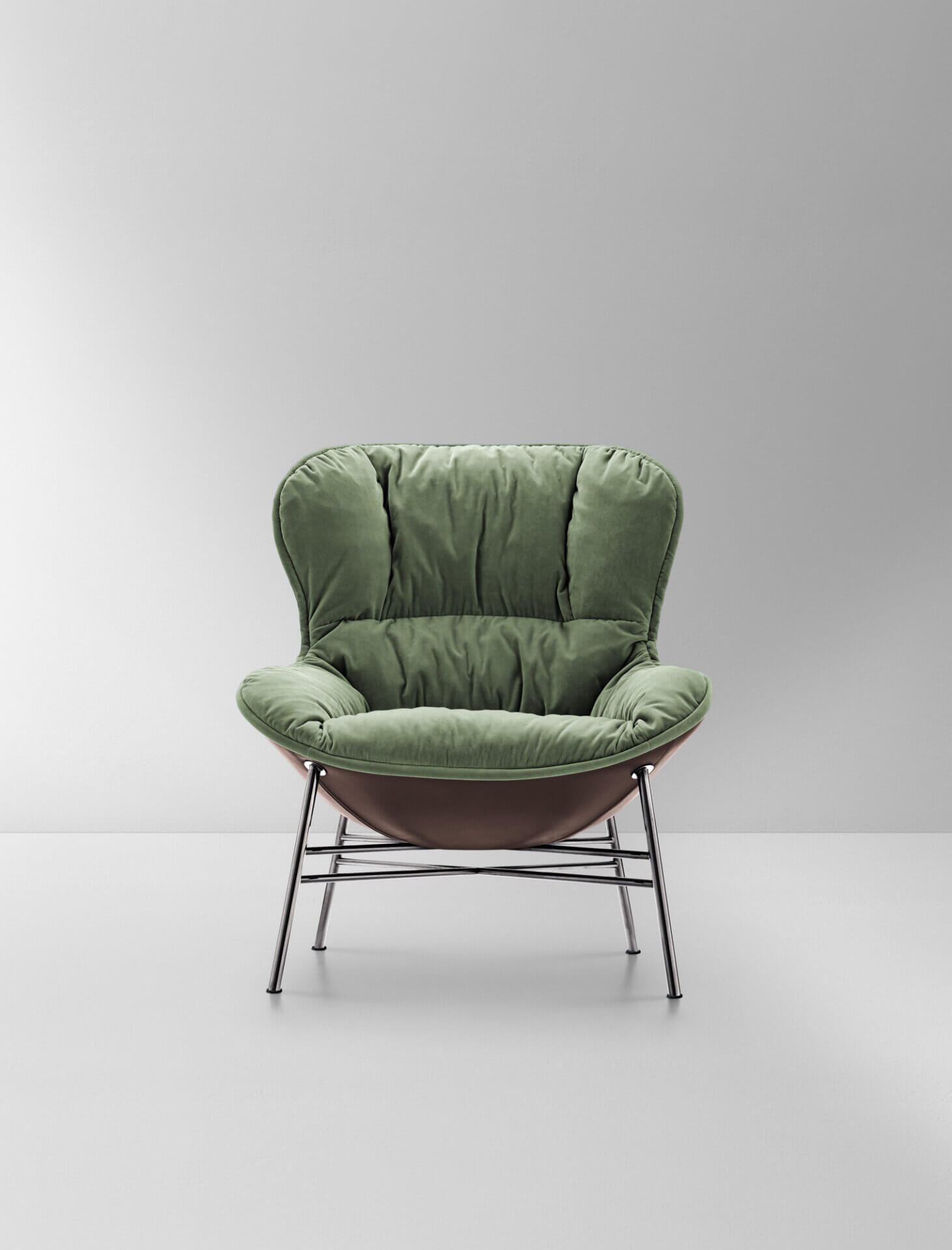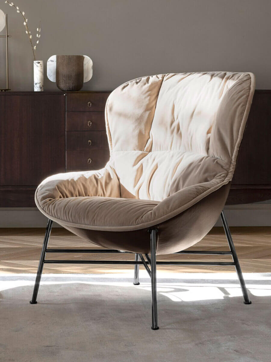Softy ist ein Sessel mit einer starken optischen Wirkung, der sowohl Solidität als auch Weichheit bietet. Der Korpus mit seinen klassischen, klaren Linien kontrastiert mit der weichen, von Daunen inspirierten Polsterung. Mit drei verschiedenen Gestellen können Sie den Stil individuell gestalten, von klassisch bis modern.