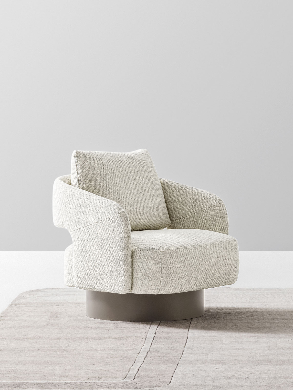 Inspired by the most stylish sports car seat upholstery, the body of the 356 chair is enveloping and linear, with rounded yet stark profiles. The seat is housed in a base which can either swivel or consist of four metal feet.