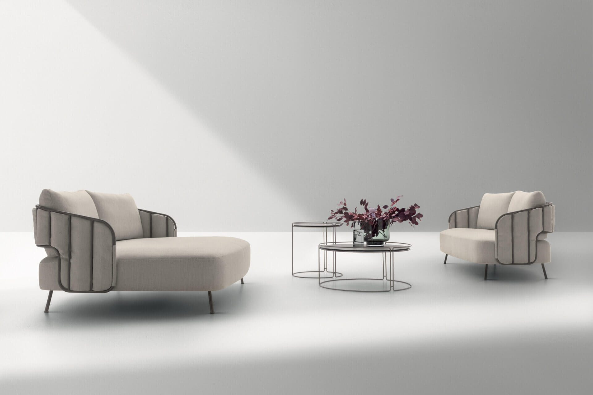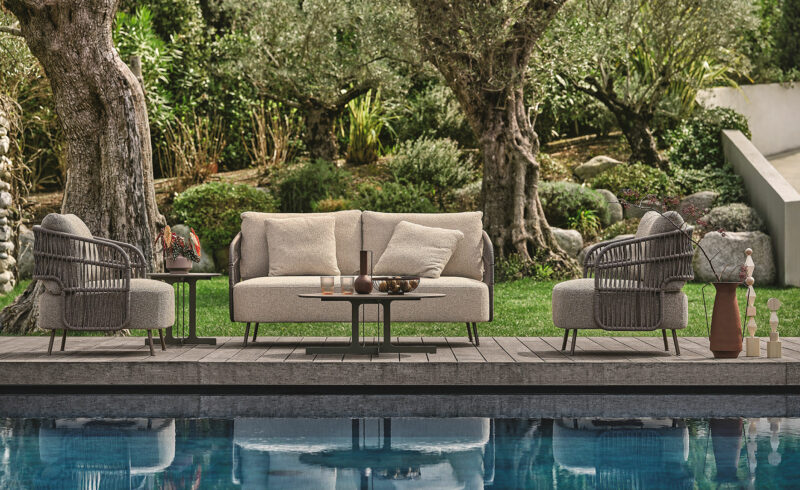 Daniele Lo Scalzo Moscheri takes his inspiration from the seats of the most elegant sportscars, turning their enveloping design into a collection of outdoor sofas and armchairs with woven or quilted backrests.