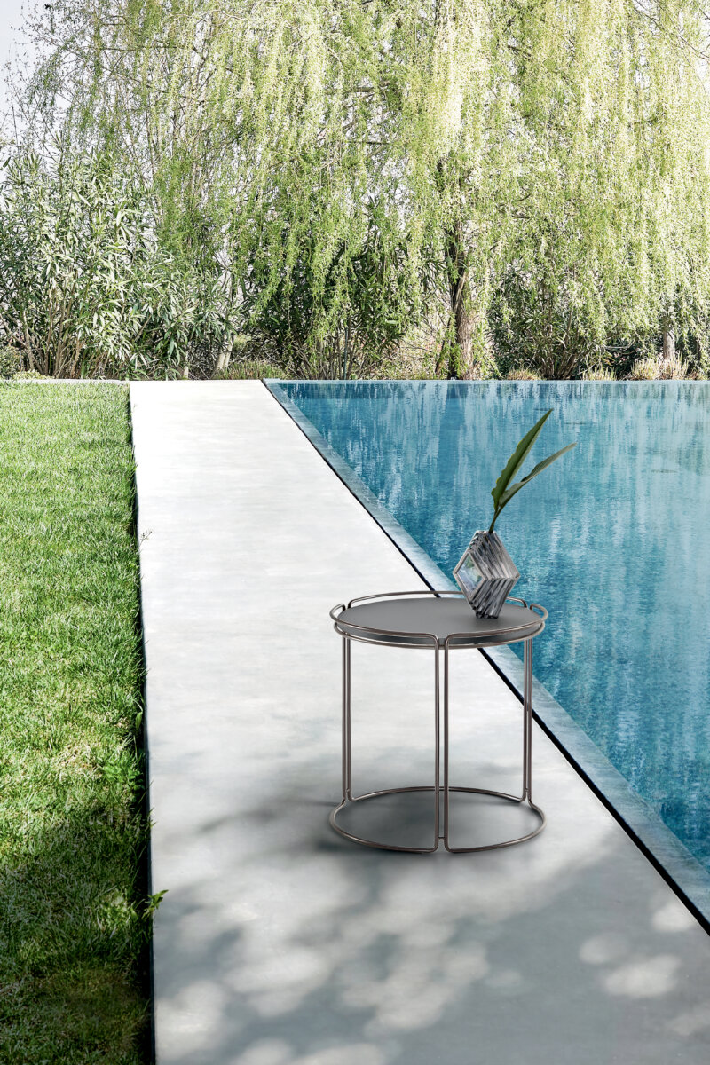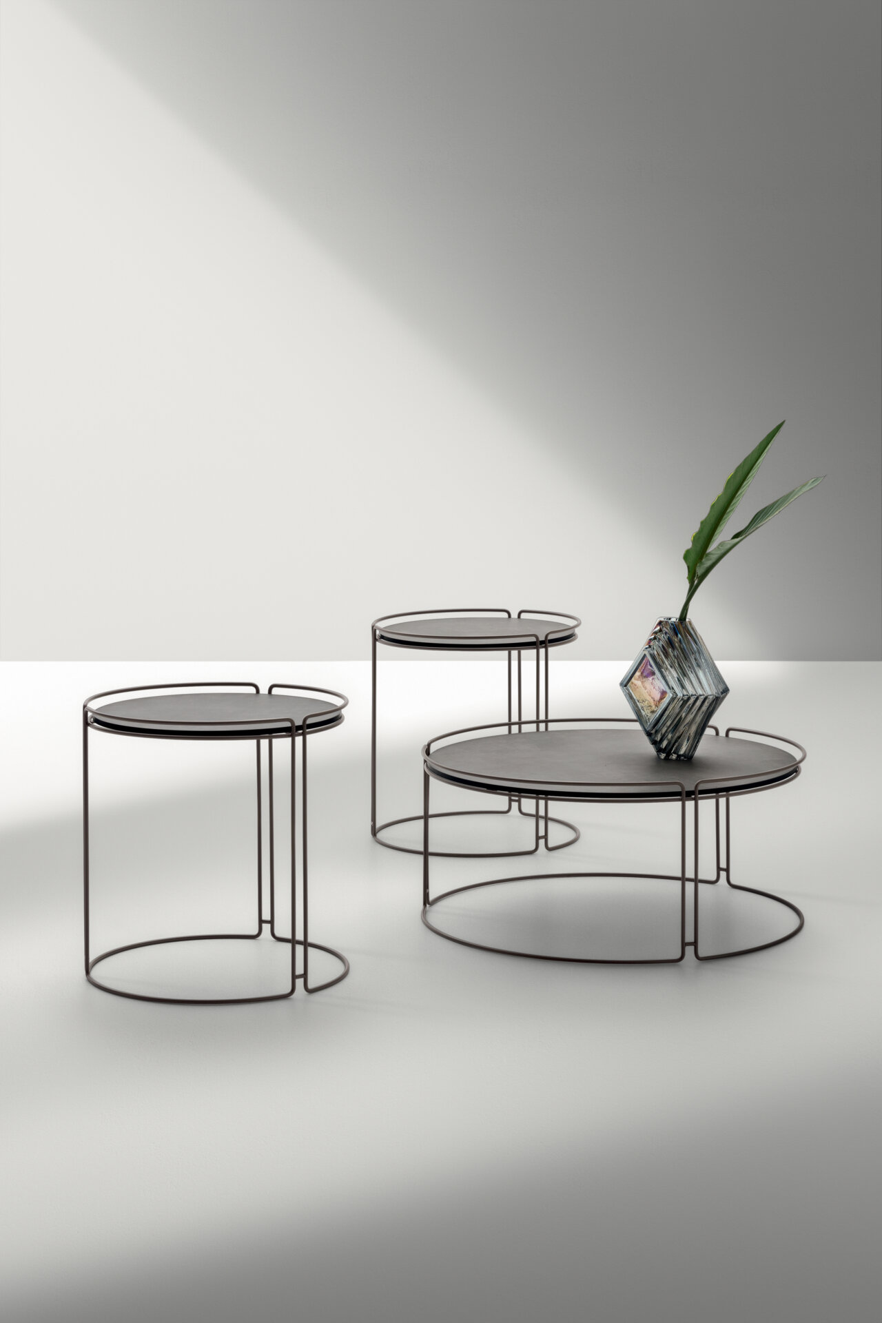 A side table with a minimalist aesthetic, inspired by the icons of design history. Daniele Lo Scalzo Moscheri designs an extremely thin tubular metal frame to support the wieldy looking round top. Available in three sizes, Monolith can be placed alongside the sofa or used as a coffee table.