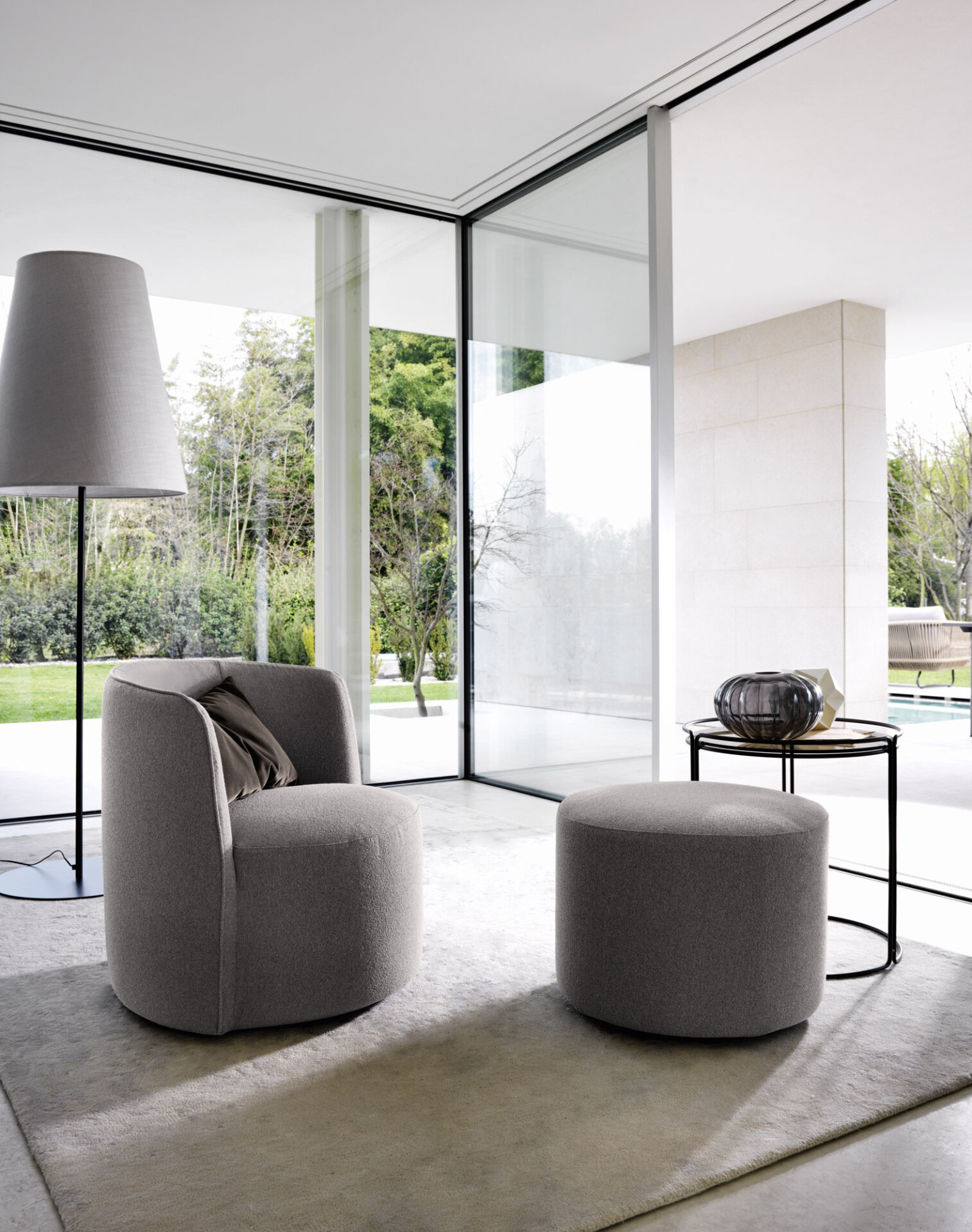 Compacto y acogedor, Chloè reinterpreta el sillón con respaldo curvo mediante volúmenes redondos y rellenos mullidos. En la versión más sofisticada, Chloè Luxury, el dorso está adornado con un plisado que evoca el ambiente de un taller de confección de otros tiempos.