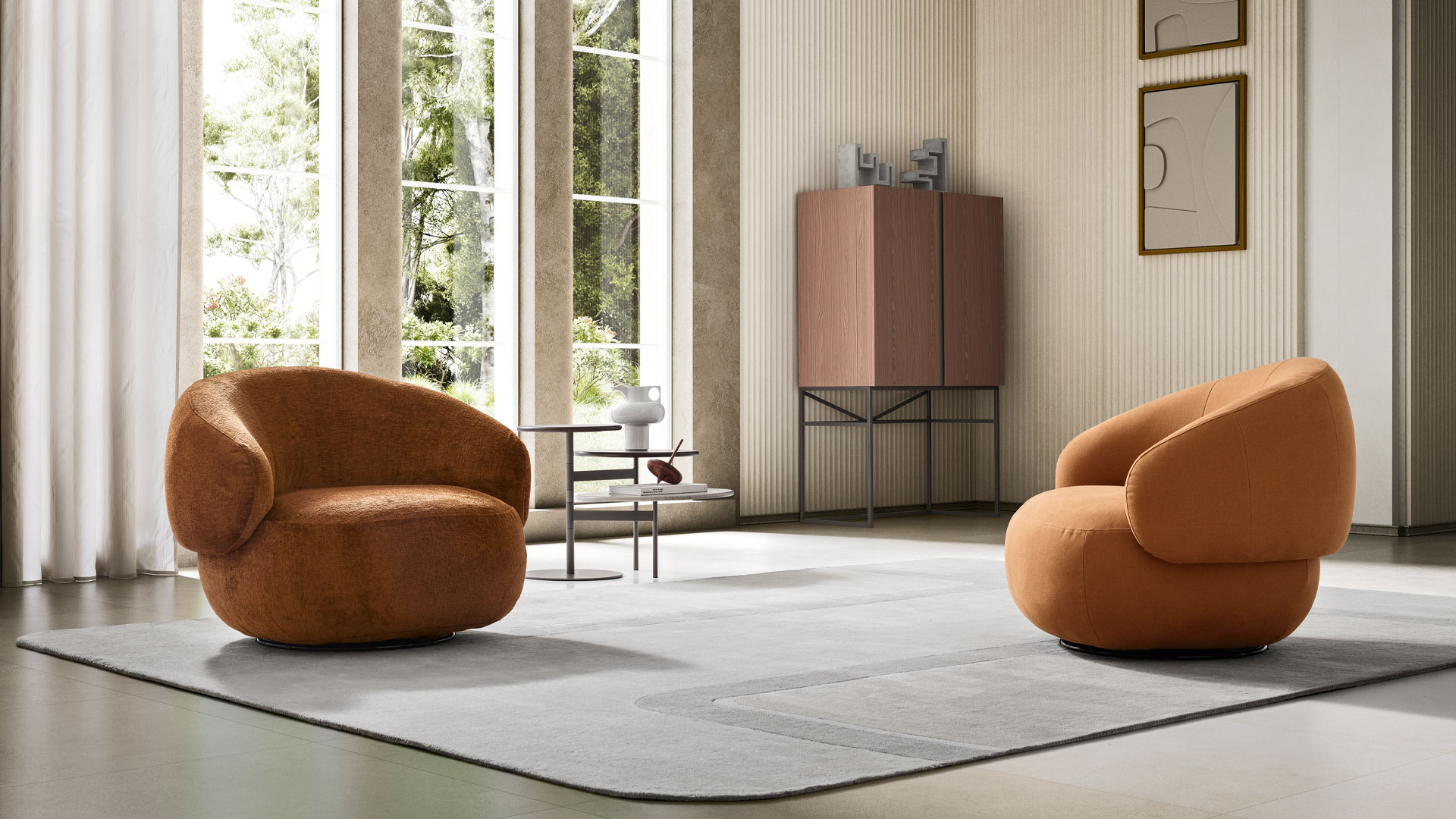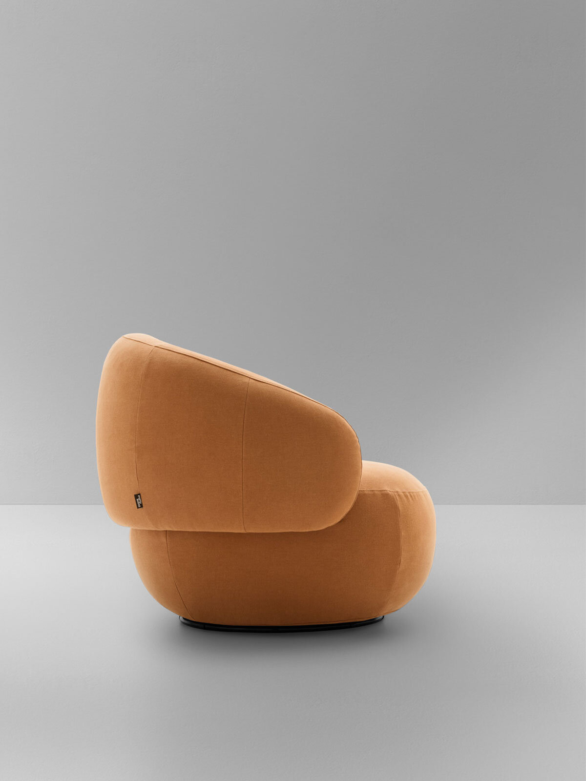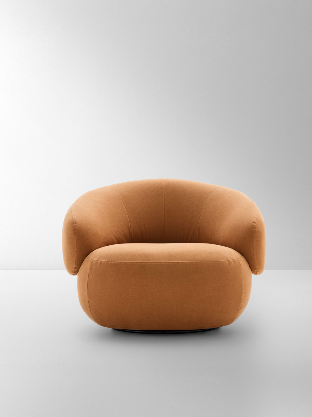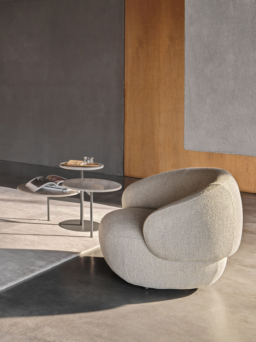 Pacific es un sillón de formas orgánicas y líneas fluidas, donde los volúmenes de asiento y respaldo se solapan como si fuesen piezas esculpidas a partir del agua o del viento. Un objeto de colección que dialoga con los sofás de la misma familia, pero expresa un carácter marcado incluso por sí solo.