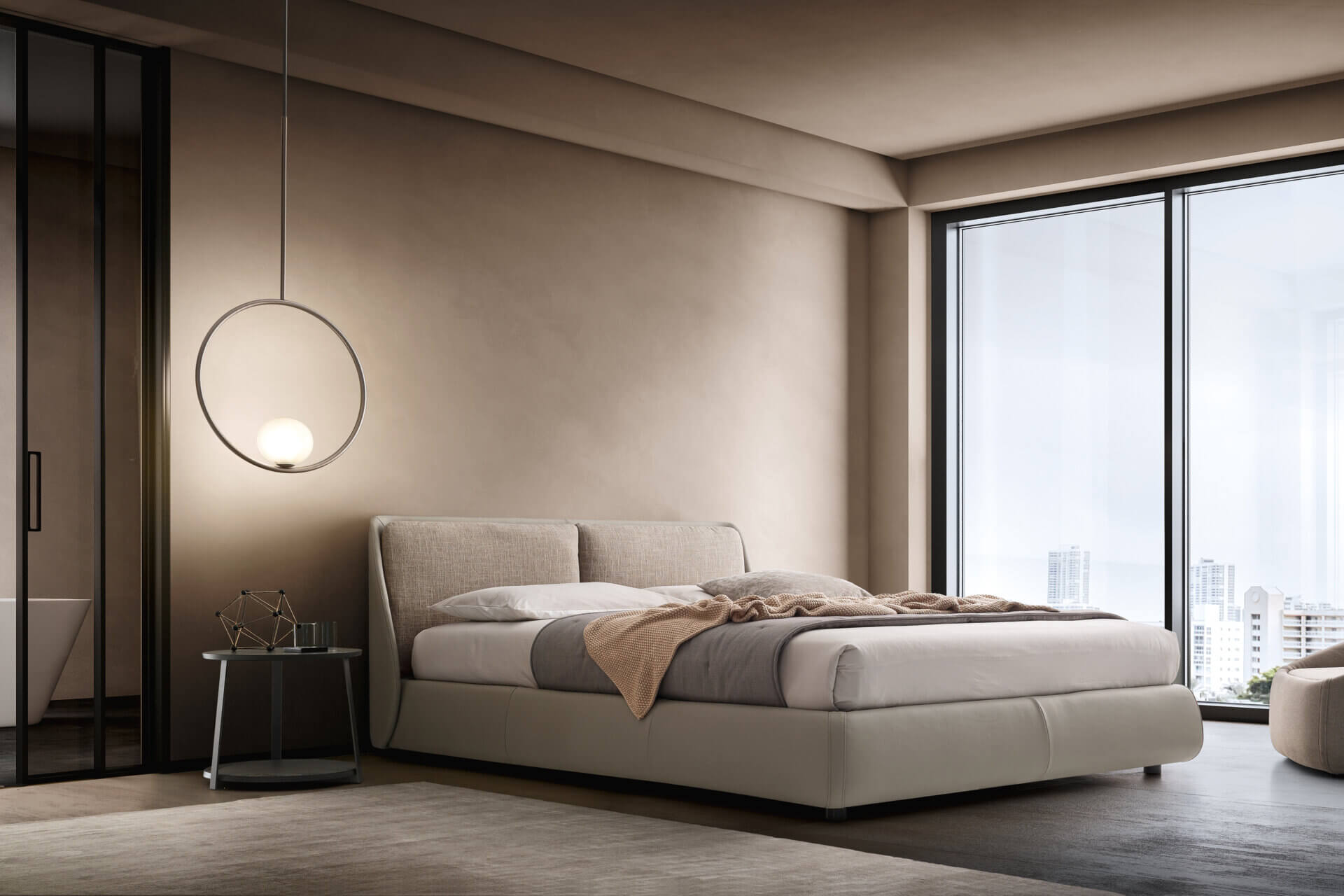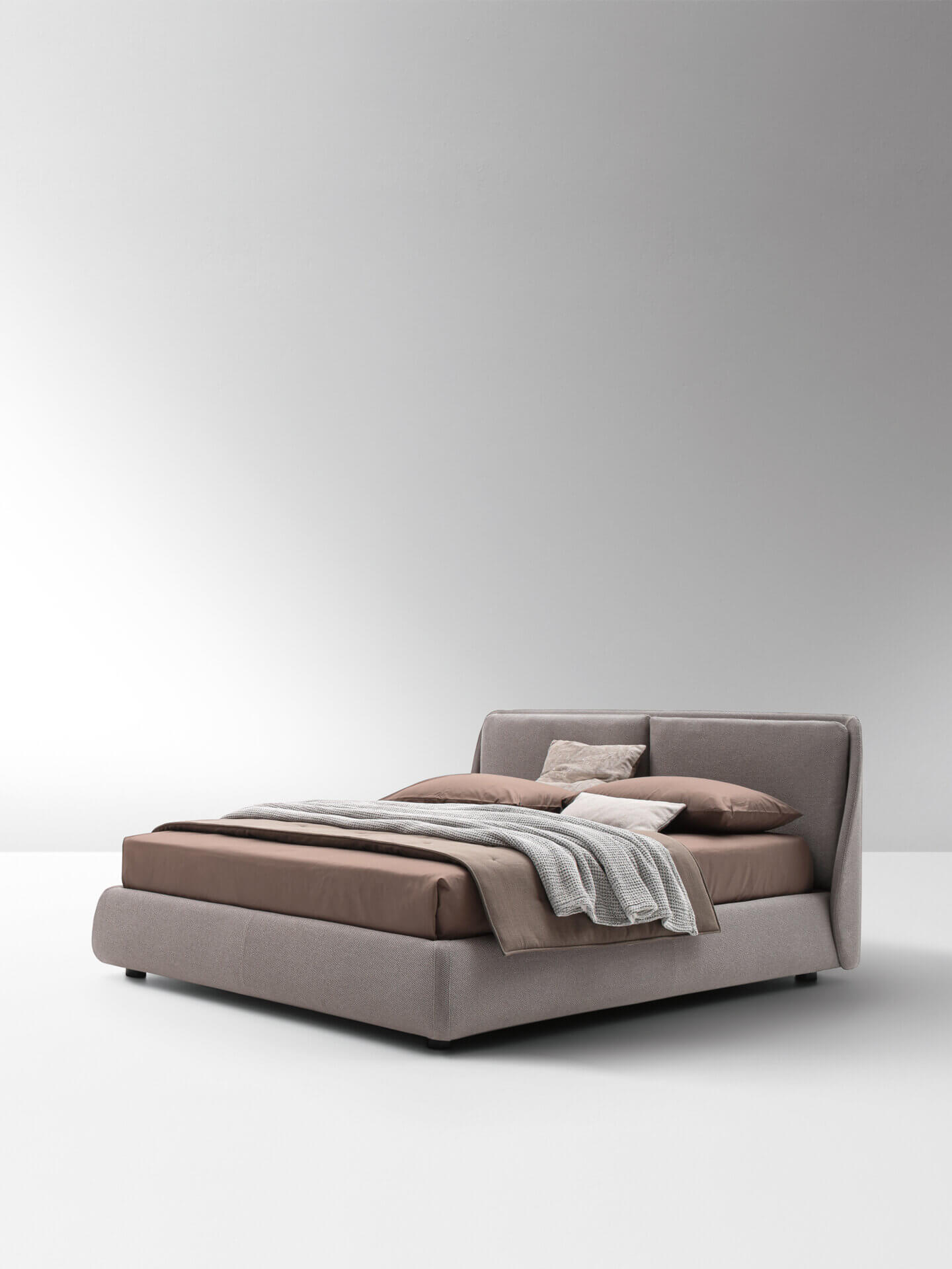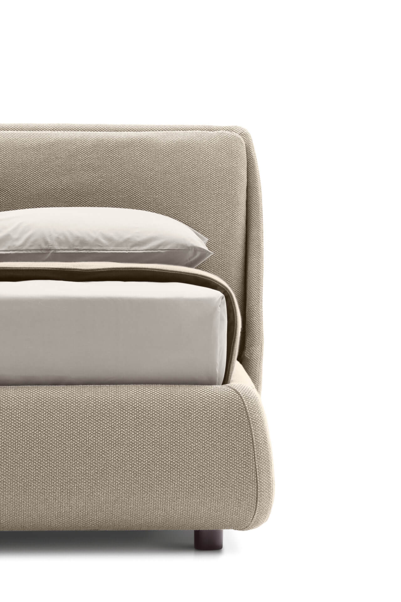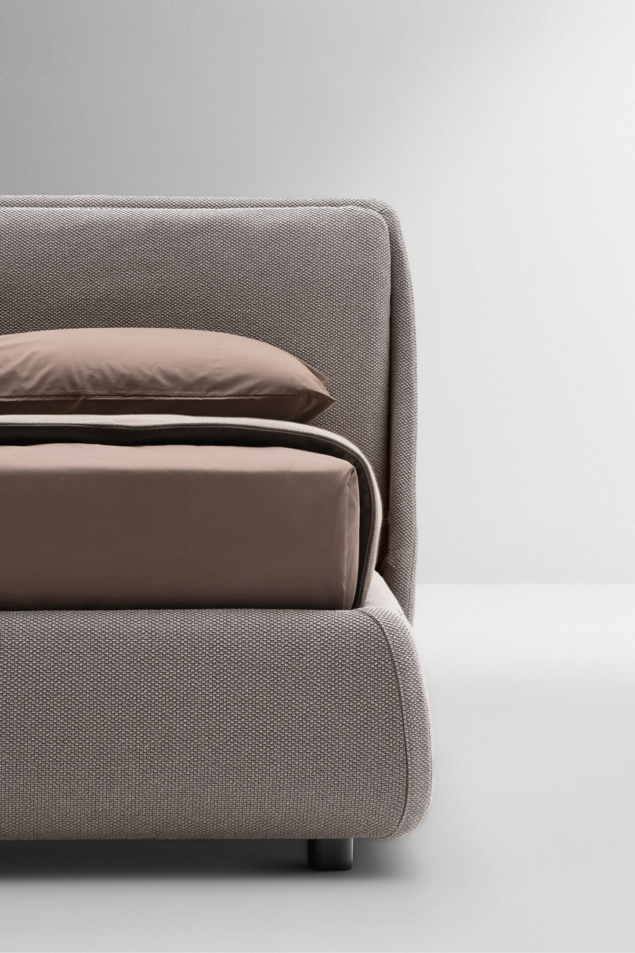 Un espacio íntimo, un abrazo envolvente que invita al reposo y a la lectura. El diseño equilibrado de Bend, resaltado por la calidad de los detalles de confección, que introducen en el dormitorio conceptos del mundo de la costura, se distingue por el cabecero que alberga dos cómodos respaldos tapizados. Bend se combina a la perfección con el sillón del mismo nombre, creando una armonía difusa en el dormitorio y fuera de él.