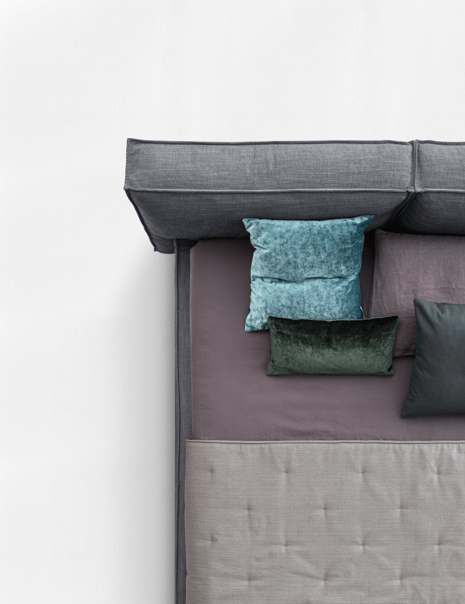El diseño riguroso de su característico cabecero se funde con la suavidad de los revestimientos, para unirse después a un aro con o sin patas vistas. Flann 2.0 es sinónimo de máxima versatilidad entre formas y materiales, una llave maestra para cualquier tipo de mobiliario, capaz de alzarse como protagonista en los dormitorios más heterogéneos.