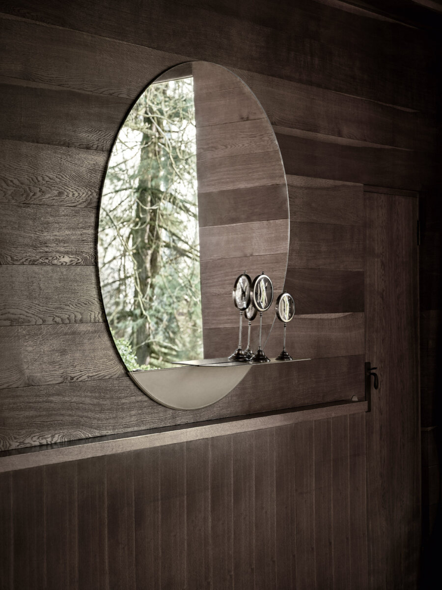 Nacido como complemento del aparador que lleva el mismo nombre, el espejo Eric ha cobrado vida propia. El mérito es de la delgada repisa engastada, un pequeño detalle que lo convierte en una pieza con encanto estético y práctica en cualquier zona del hogar.