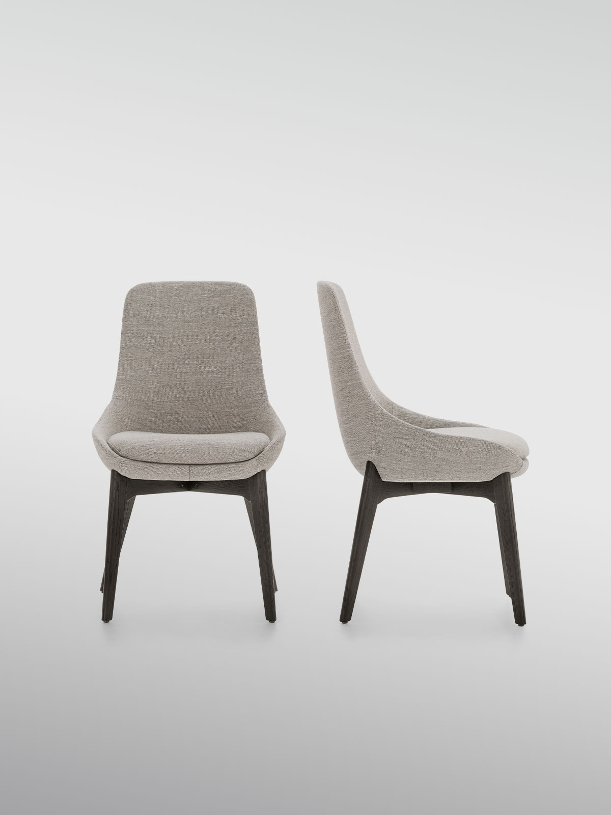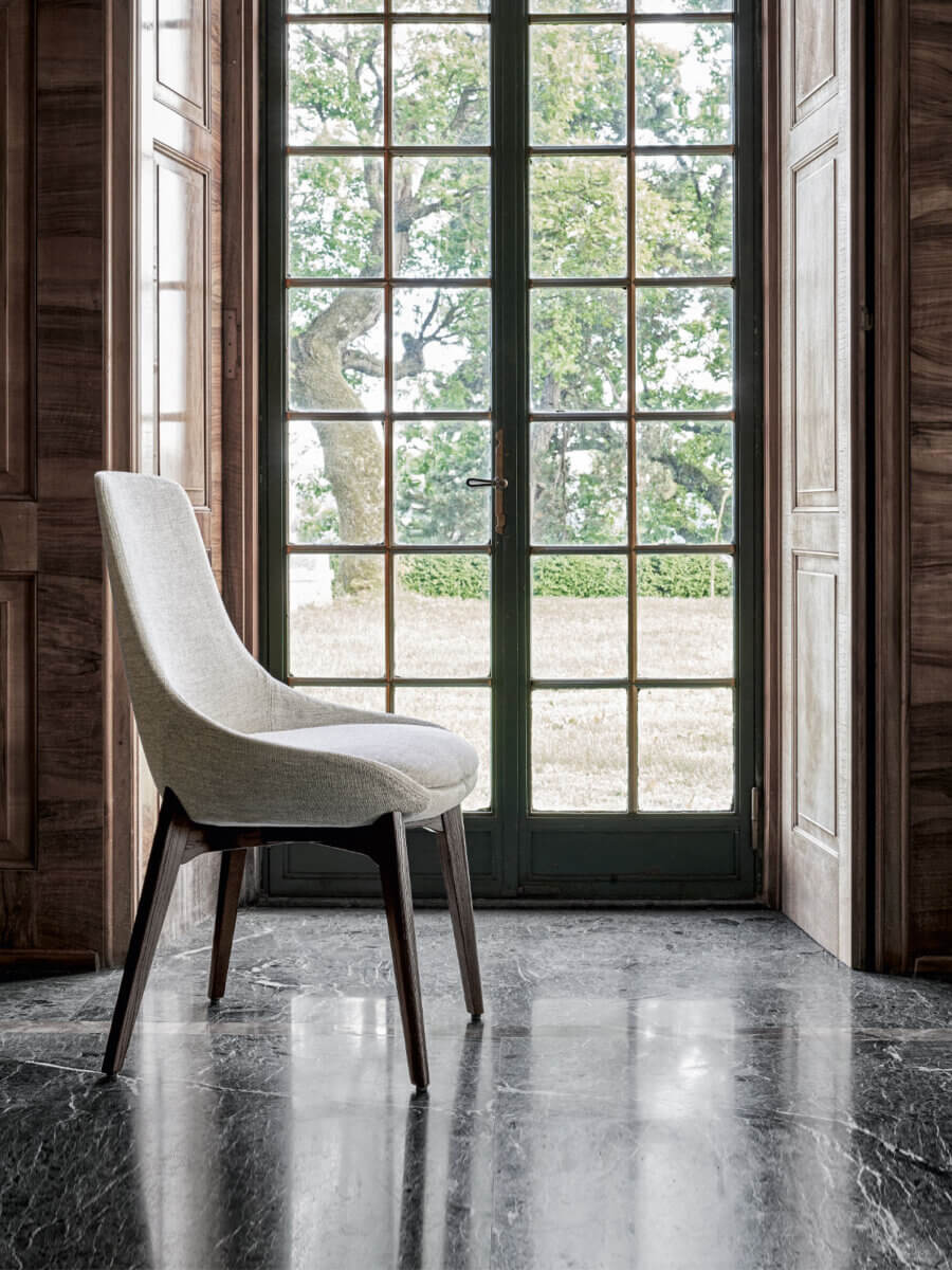 La silla Linear tiene una presencia firme pero discreta. Sus líneas suaves y ergonómicas la convierten en un asiento cómodo, perfecto para un comedor de estilo moderno. El confort es mayor gracias a un relleno básico pero acogedor, que valoriza las formas y acentúa su elegancia.