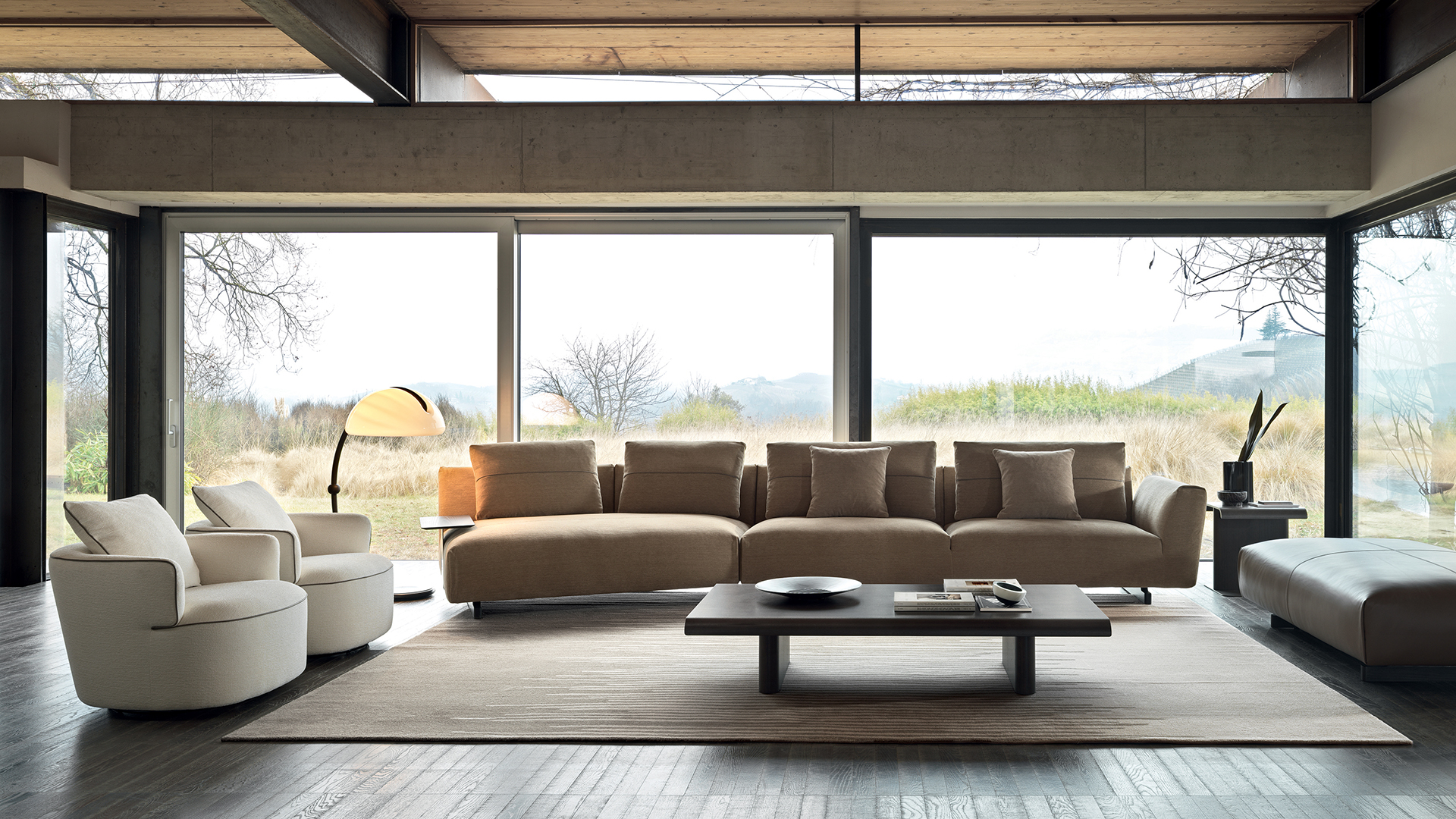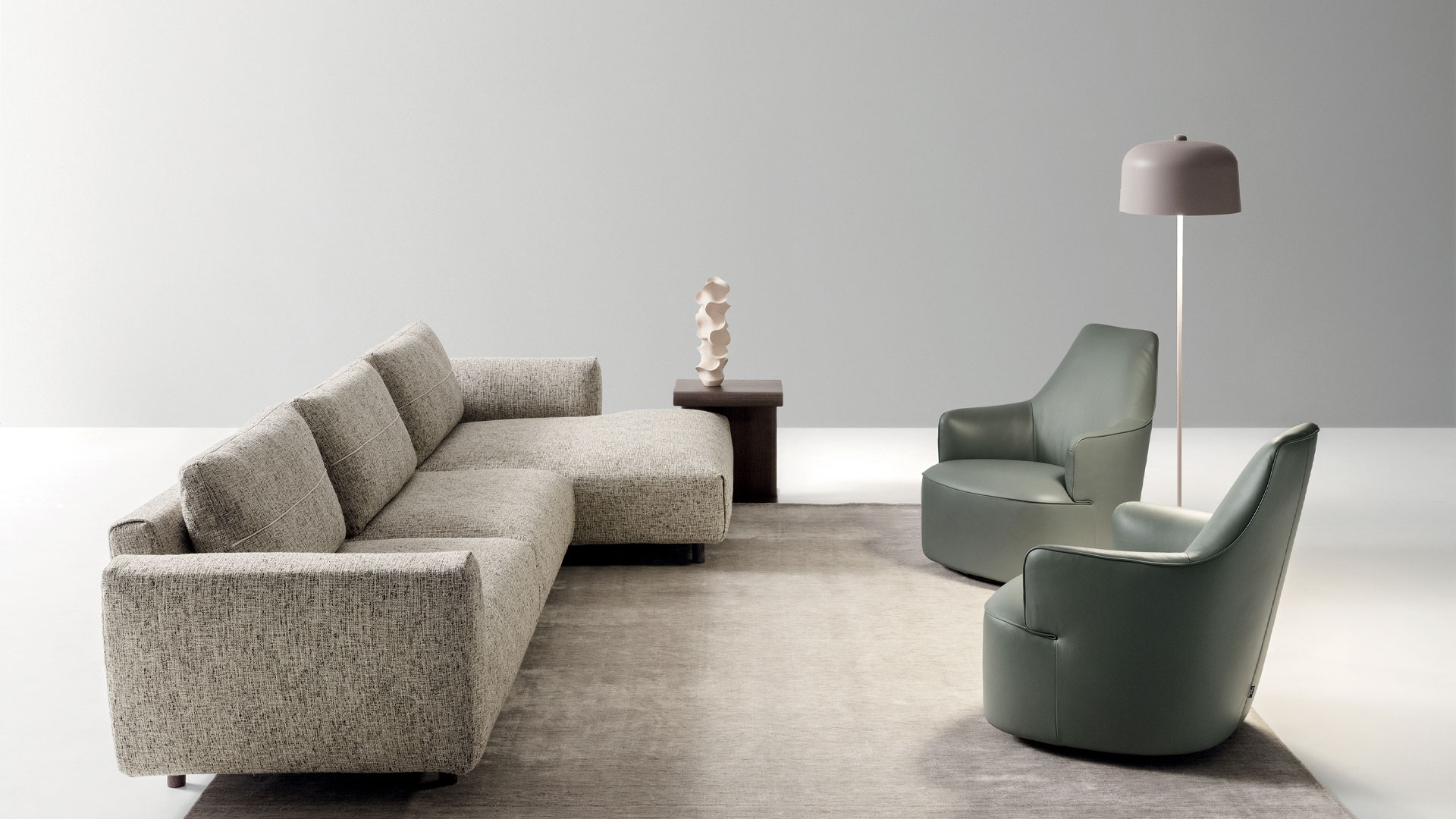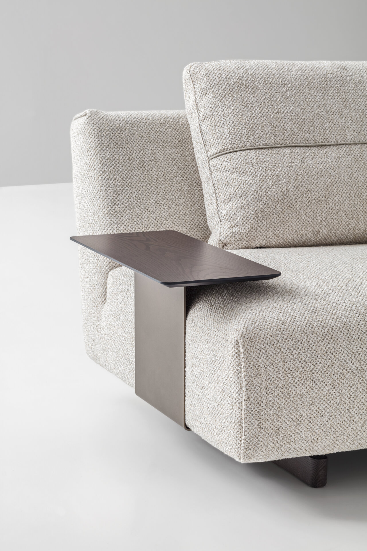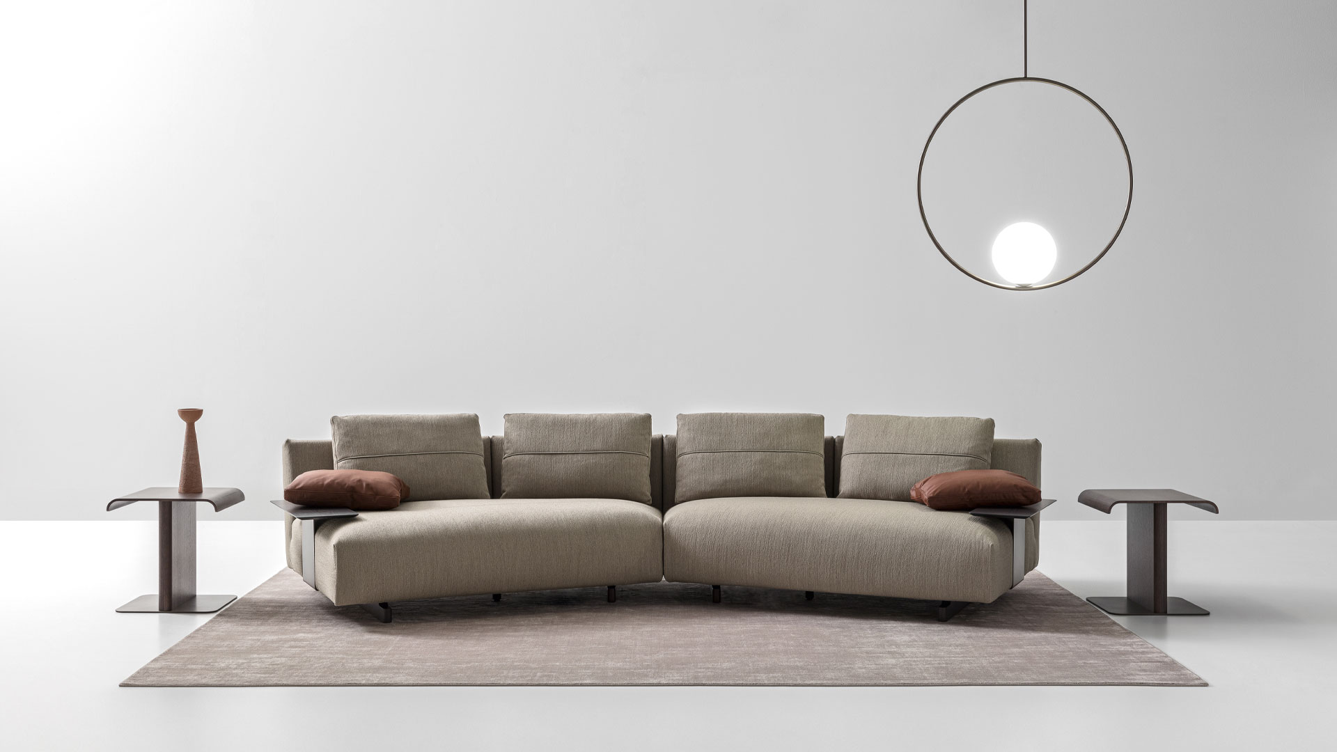 Un refinado sistema modular delinea un espacio acogedor, construido según las preferencias y los hábitos de uso. Las inclinaciones inéditas y las diferencias de profundidad de los elementos hacen de Atlantis un sofá flexible y funcional. Hay dos versiones disponibles: una clásica, con reposabrazos fijo, y otra móvil, con un reposabrazos que se convierte en mesita o cojín, un elemento combinable más en el seno del sofá.
