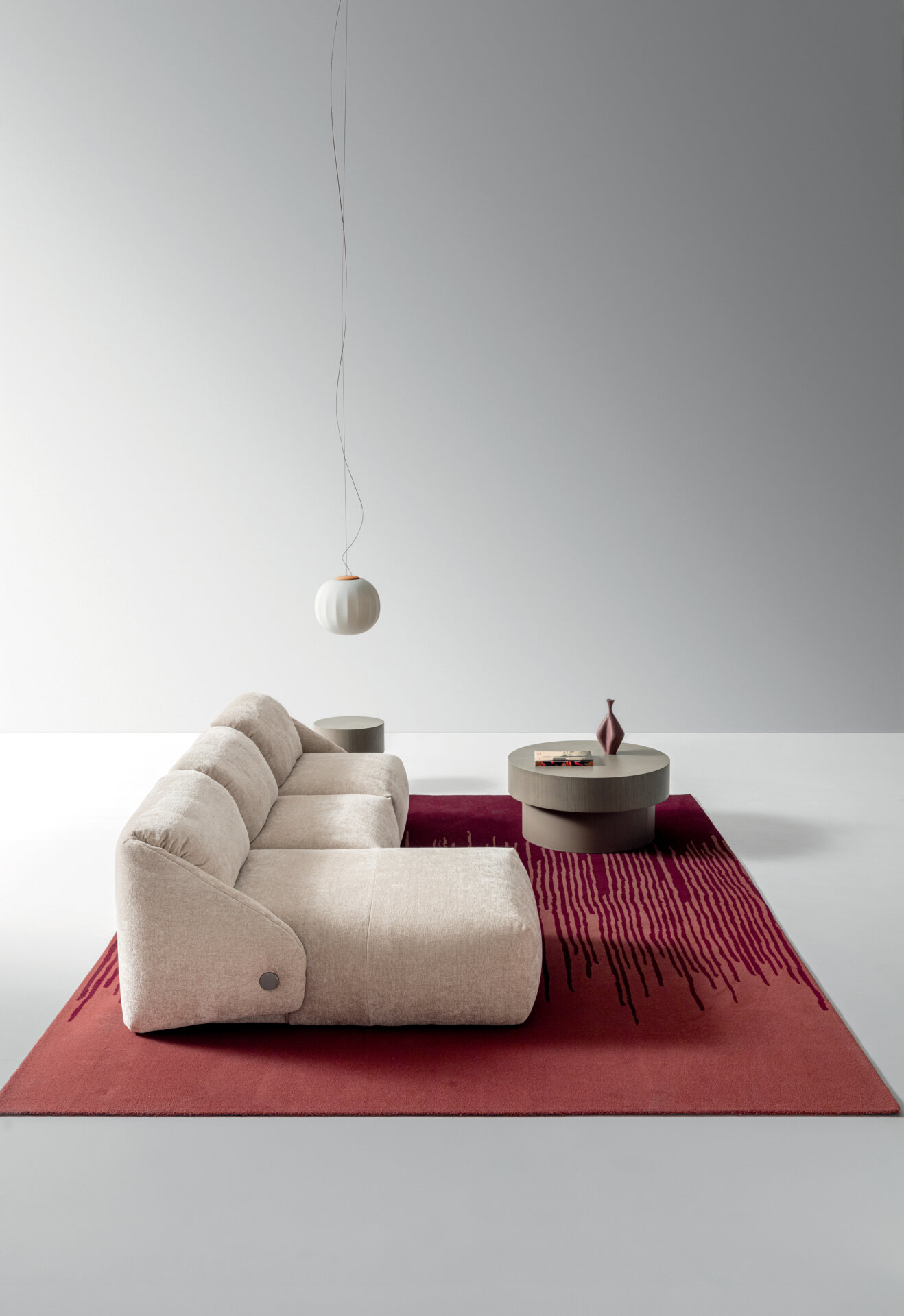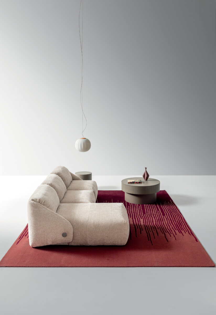 Tan sencillo como un origami y tan sofisticado como una chaqueta a medida. El primer sofá diseñado por Patrick Norguet para Ditre Italia combina volúmenes audaces con un diseño elegante y acogedor, como una prenda de vestir cómoda. El detalle de estilo son las solapas del respaldo y del asiento que, plegadas como un cuello abotonado, mantienen en su sitio los generosos elementos tapizados, acentuando su aspecto blando y relleno. La colección se completa con los sillones, que pueden tapizarse en tejido, como el sofá.