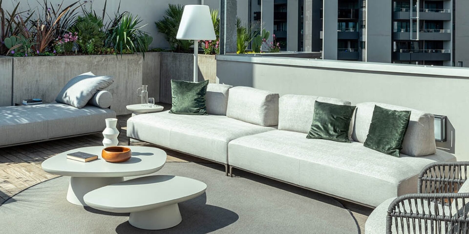 La forme des coussins de dossier se resserre à proximité des accoudoirs.