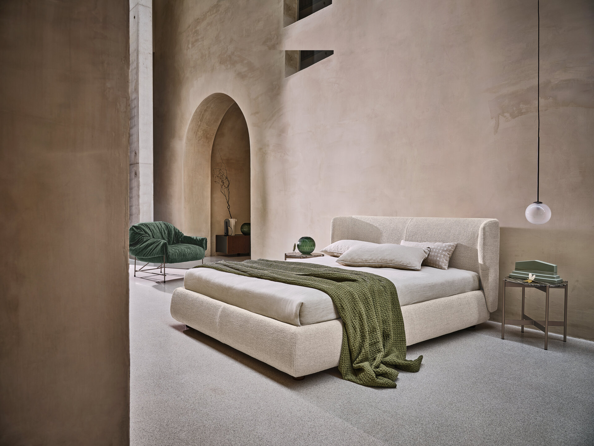 Comme dans une danse de formes arrondies, des surfaces lenticulaires dévoilent une harmonieuse tridimensionnalité et un langage inédit. Une tête de lit sinueuse et une base aux lignes douces s’unissent pour former un lit élégant, au charme très polyvalent. Grâce à la variété de ses revêtements, le lit Claire s’adapte facilement à des intérieurs classiques ou contemporains.
