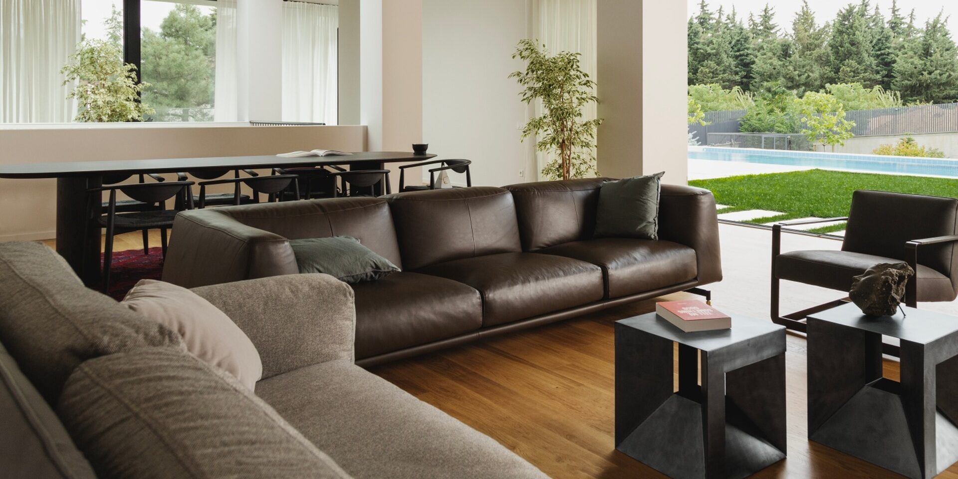 La zona giorno ospita due prodotti Ditre Italia: l’intramontabile divano St. Germain e il divano Kris che, ispirato al raffinatostile Art Decò, presenta una struttura trapuntata e nuovi piedini tubolari.