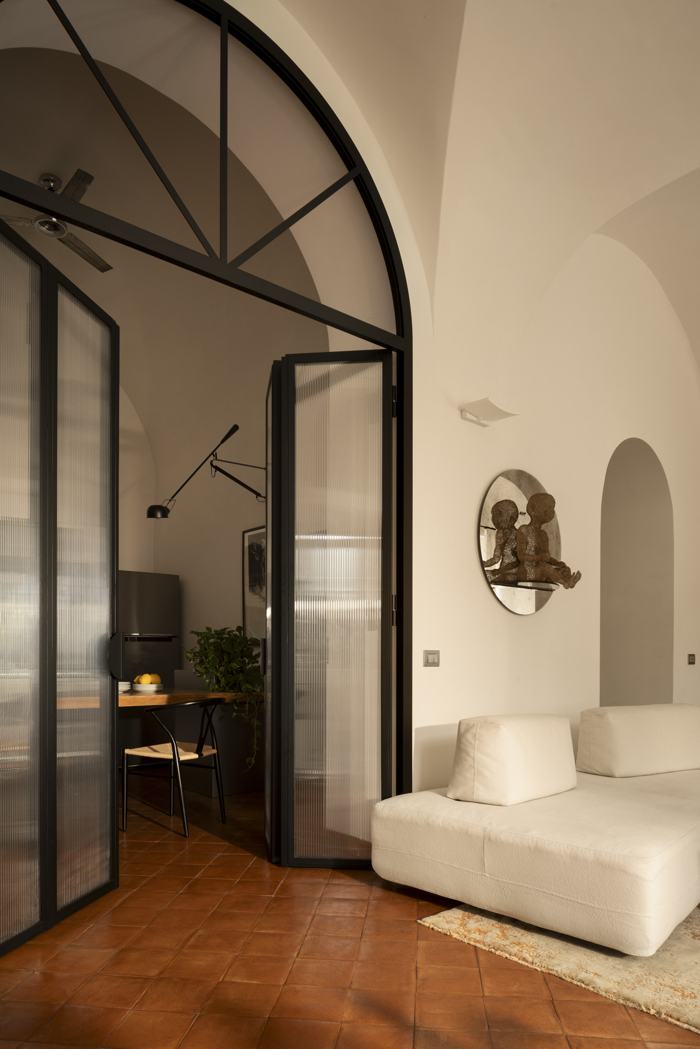 Situato all’interno di Palazzo Nobile, storica residenza settecentesca nel cuore di Napoli, l’appartamento dell’architetto Antonio Di Maro nasce dall’incontro tra memoria architettonica e sensibilità contemporanea. Volte a crociera, pavimentazioni in cotto e una luce naturale diffusa definiscono uno spazio dal forte carattere identitario, dove il progetto d’interni si sviluppa con equilibrio e coerenza, accogliendo il comfort firmato Ditre Italia.
