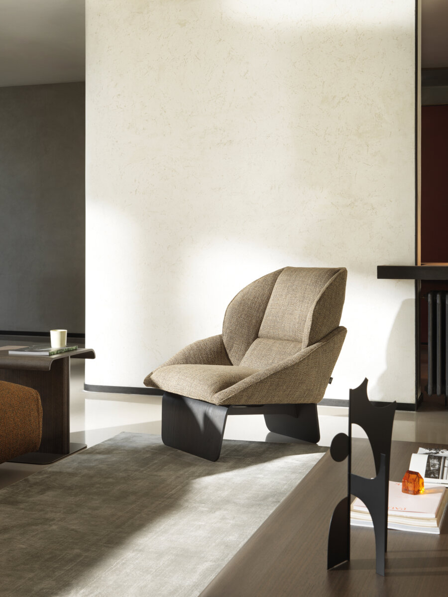 Вдохновленное цветком лотоса, кресло от Стефано Спесотто представляет собой удобную скульптурную оболочку, созданную за счет сочетания массивного деревянного основания и сиденья с закругленными краями. Мягкая, но в то же время устойчивая обивка.