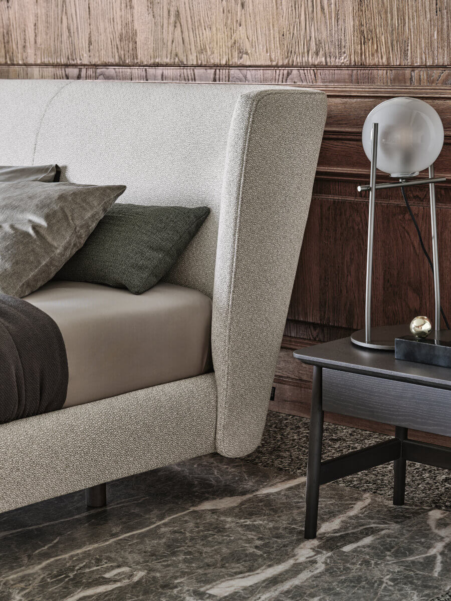 Значительные пропорции и легкие наклоны характеризуют дизайн кровати Royal, в которой изящные элементы определяют пространство изголовья. Это романтическая и женственная кровать с нотами мира моды и дизайна интерьера, предназначена для помещений, характеризующихся декоративным и утонченным стилем.