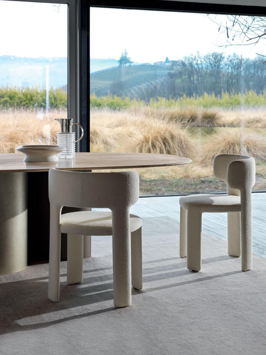 Полностью обитое кресло, мягкое и обволакивающее, но в то же время легкое. В модели Lucy дизайнеры E-ggs уделяют особое внимание ткани , которая покрывает все сиденье до самого основания, и играют с полными и пустыми, геометрическими объемами и закругленными линиями, чтобы создать удобную , но в то же время не тяжелую форму. Спинка, подлокотники и задние ножки, объединенные в единый элемент, усиливают ощущение уюта.