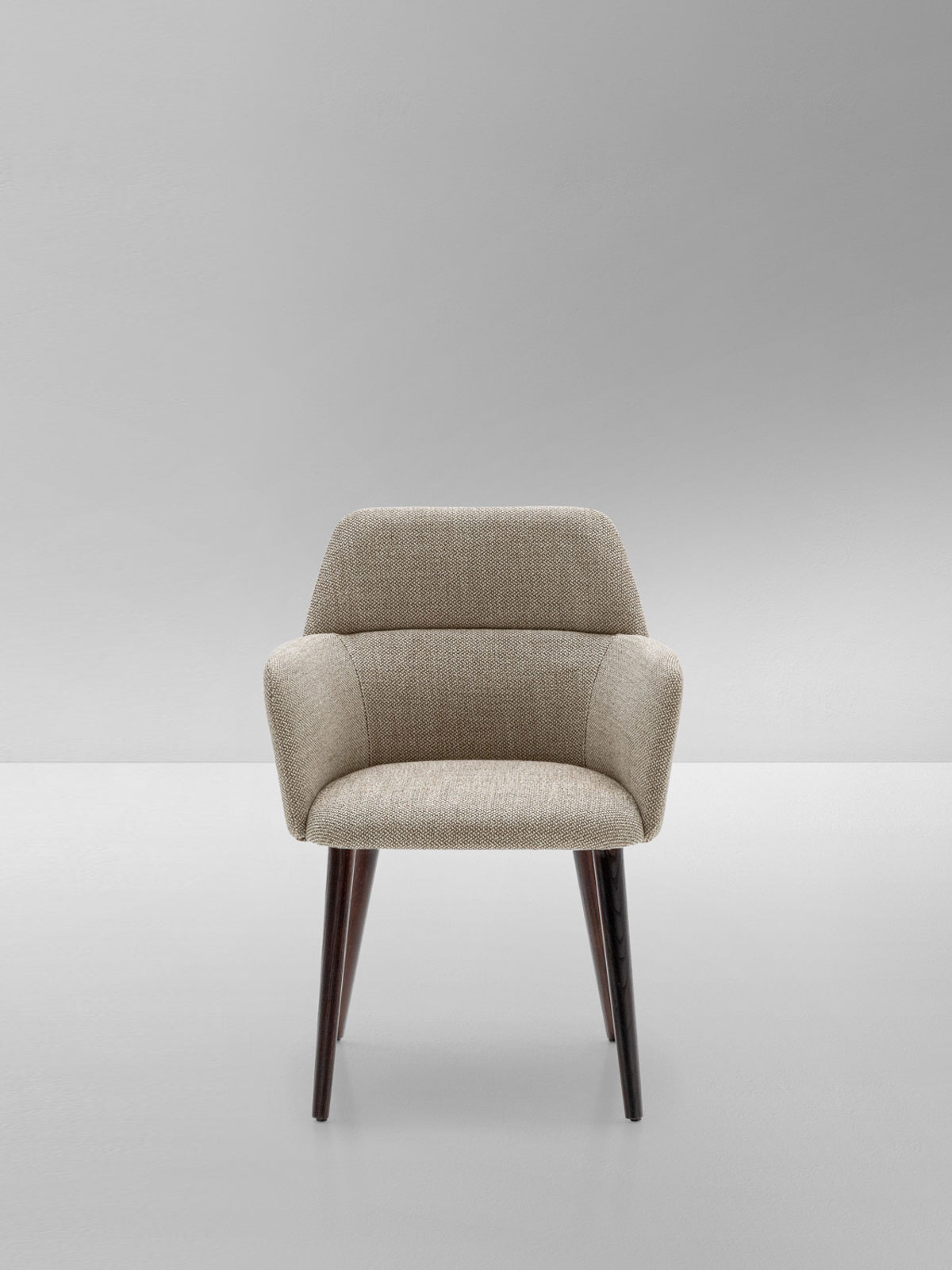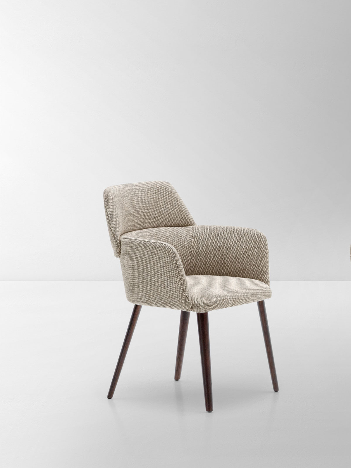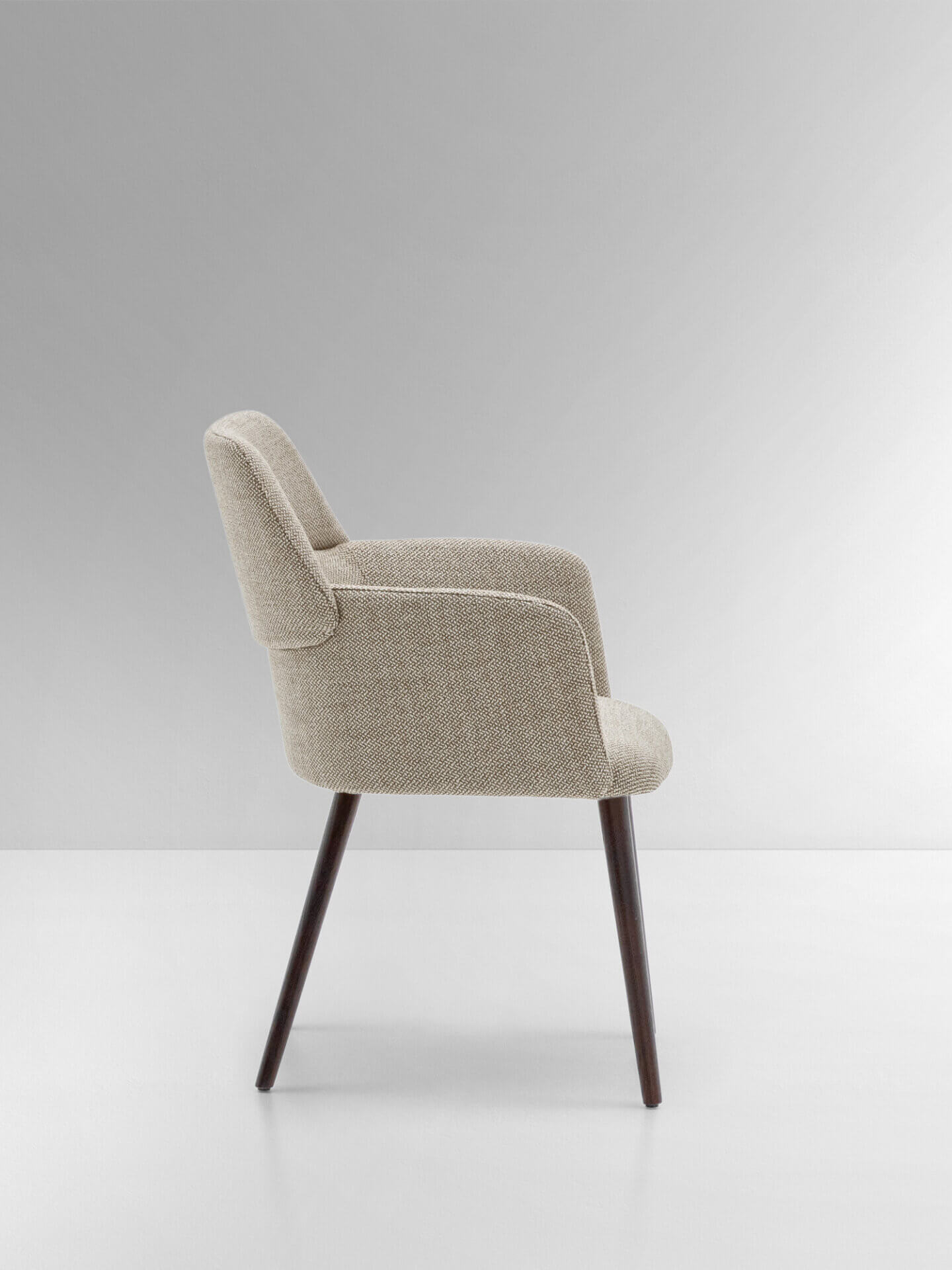 Archie - это дань уважения классическим обеденным стульям с мягкой обивкой. Этот стул с комфортным и сдержанным элегантным внешним видом, идеально подходящий для обеденного стола, характеризуется перекрывающимися объемами каркаса и спинки.