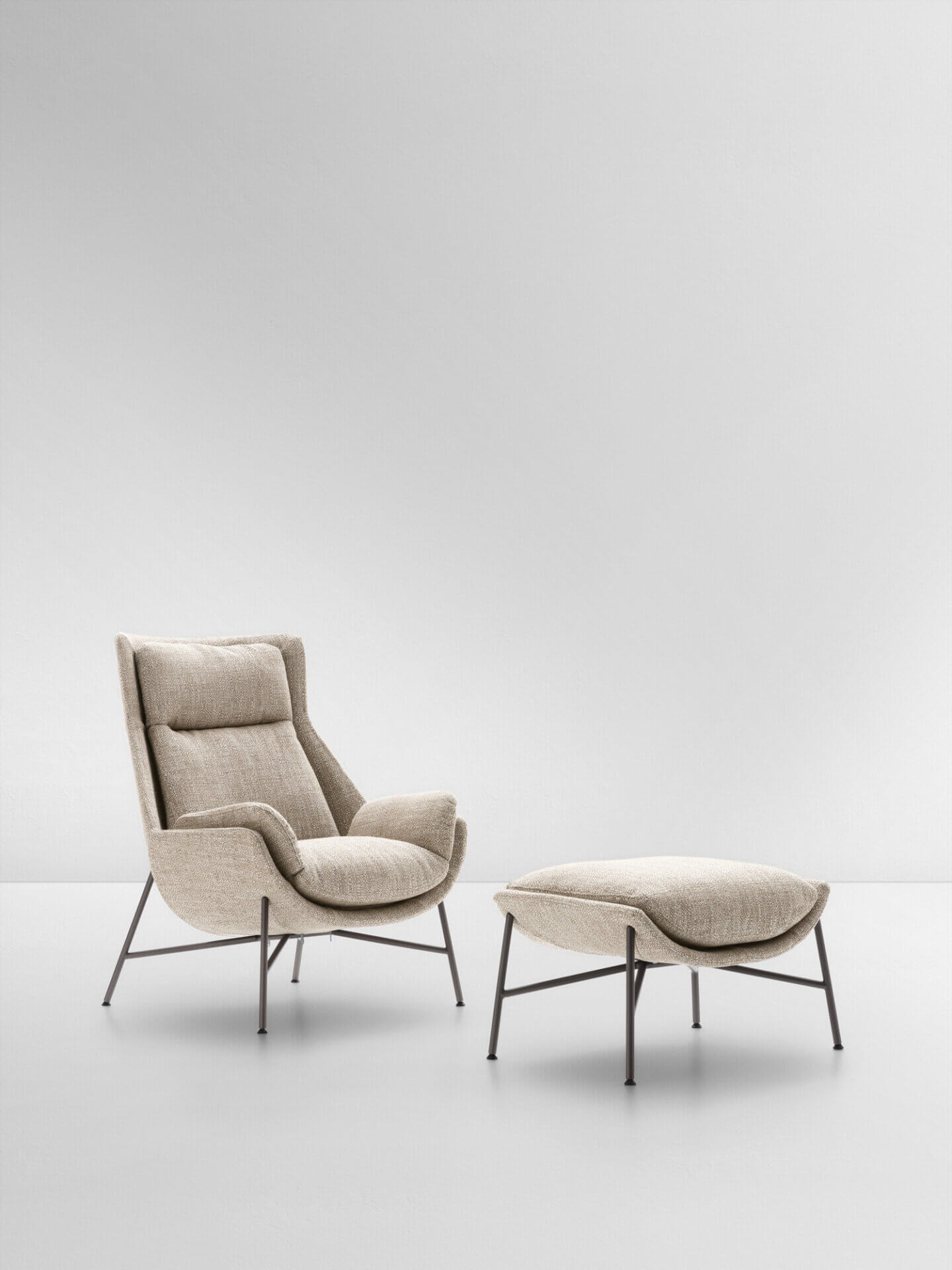 Beetle扶手椅的设计灵感来源于自然界,尤其是甲虫,其框架让人联想到甲虫的外壳,椅腿则采用了细长的金属材质。外部线条具有张力,轮廓分明,而内部衬垫则柔软丰满,形成鲜明对比,为设计双色版座椅提供了可能。为使该系列更加完整,还可搭配坐墩。