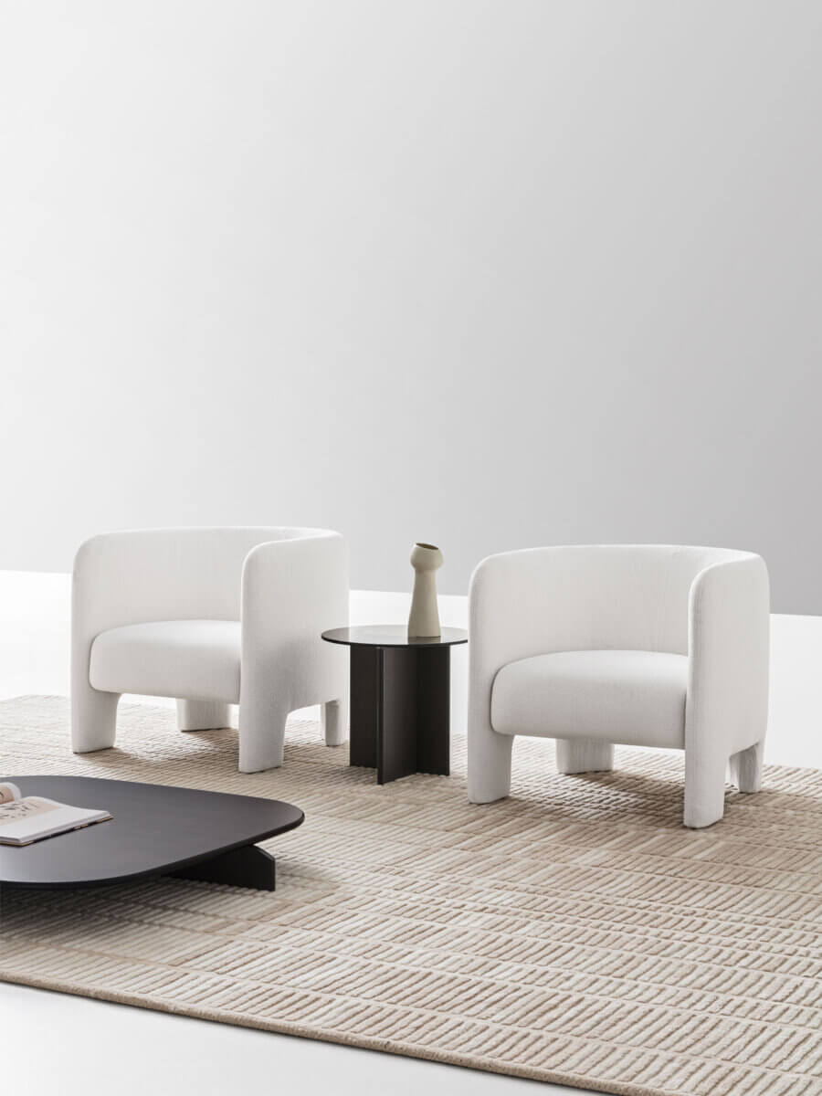 与极具辨识度的沙发一样,Cali扶手椅也配有坚实的全软衬包覆椅腿,其灵感源自印度女神迦梨的四只手臂。构造精心且紧凑,给人以稳定和平衡之感,为起居室增添优雅。