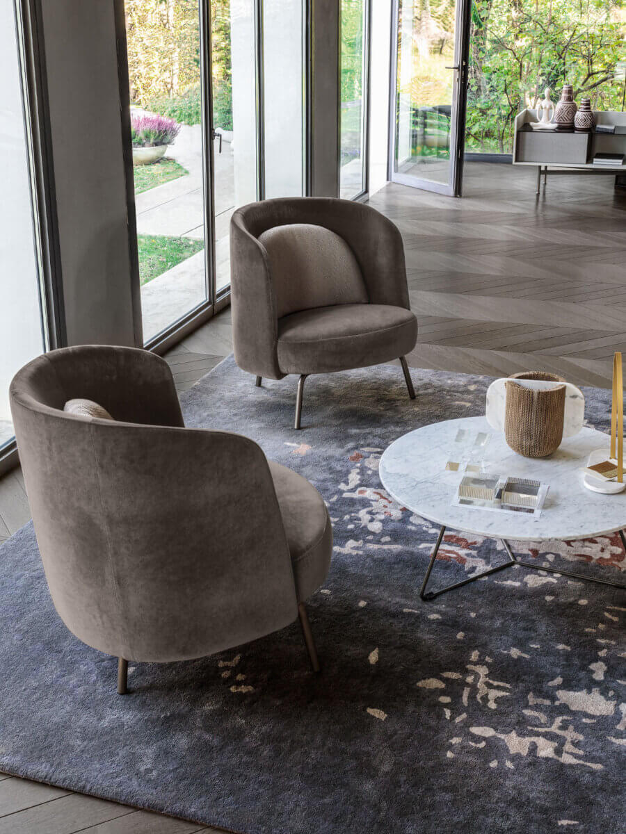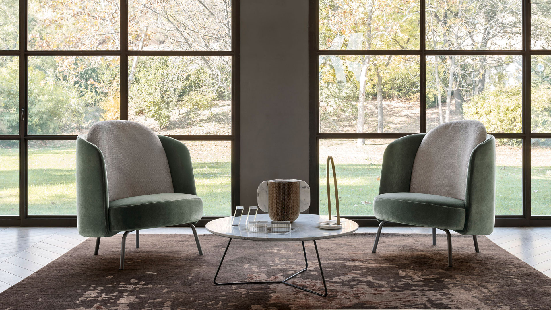 这款扶手椅有一个女性的名字,其精致和优雅令人惊叹。Lucia由Federica Biasi创作,其柔和的曲线和纤细底脚等精致的细节为起居室增添了优美韵味。覆面有单色和双色两种,包括在布艺与皮革混合款上。