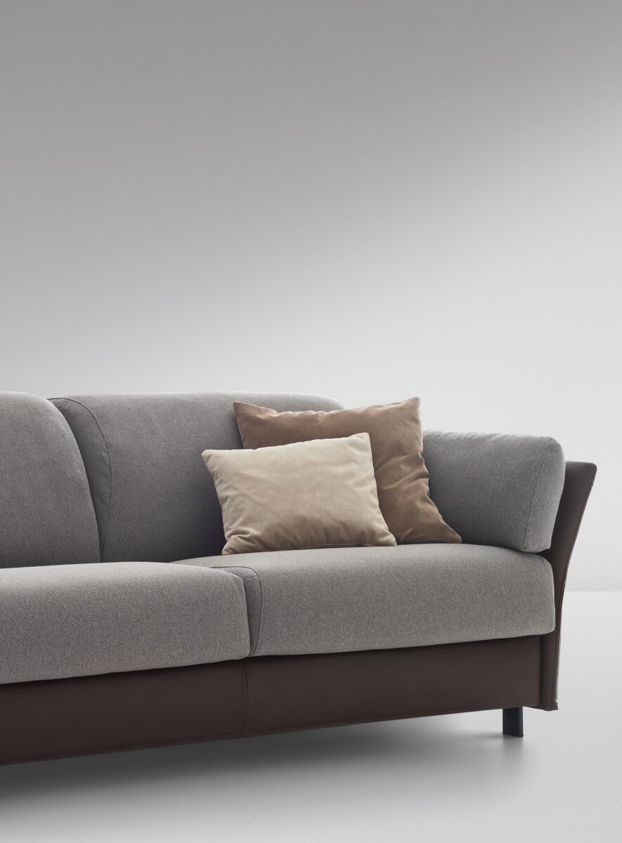 这款多材质沙发床的设计灵感来自同一系列的沙发。 Kanaha 2.0呈现出可见皮革严谨结构,带有柔软的坐垫和靠垫,在接近勾勒出独特轮廓的扶手附近逐渐变窄。
