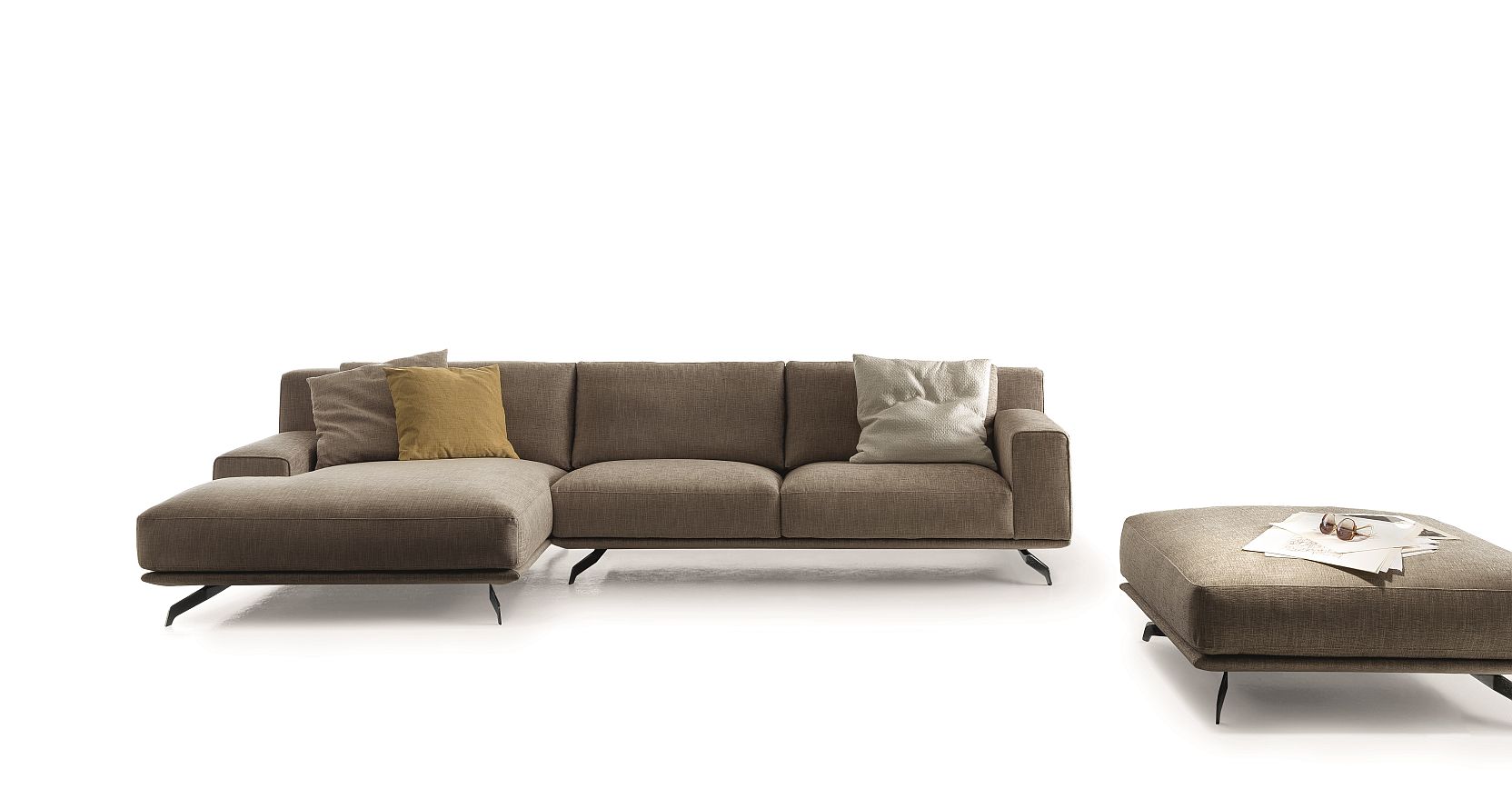 庄严,优雅,简约或轻盈。 解读该体系的两个关键是提供两种扶手尺寸及两种靠背解决方案。一种解决方案是一体式靠垫(Dalton),一种是不同尺寸的自由式靠垫(Dalton Soft)。 布艺饰面布艺饰面可以选择完全可拆卸式,或皮革坐垫,可拆卸仿皮垫及不可拆卸外壳。支脚的三个处理:铬,镍铬和氧化铁。设计:Spessotto & Agnoletto