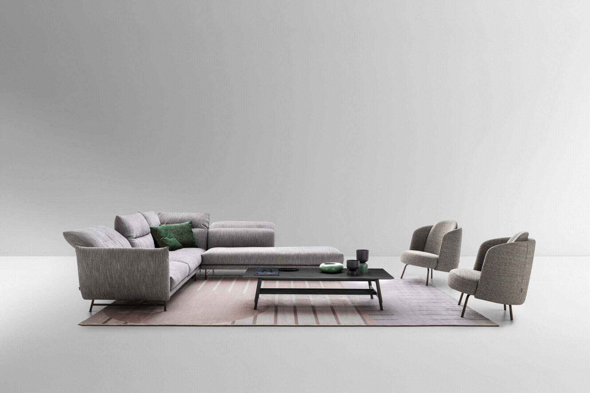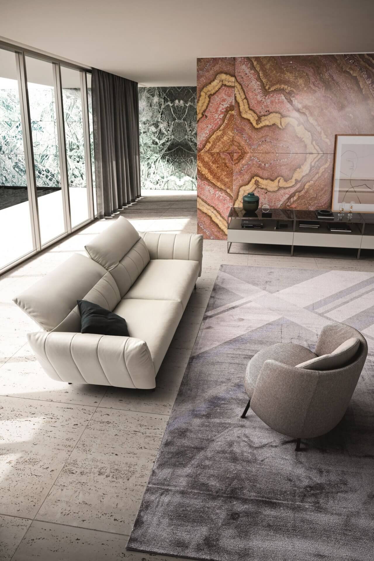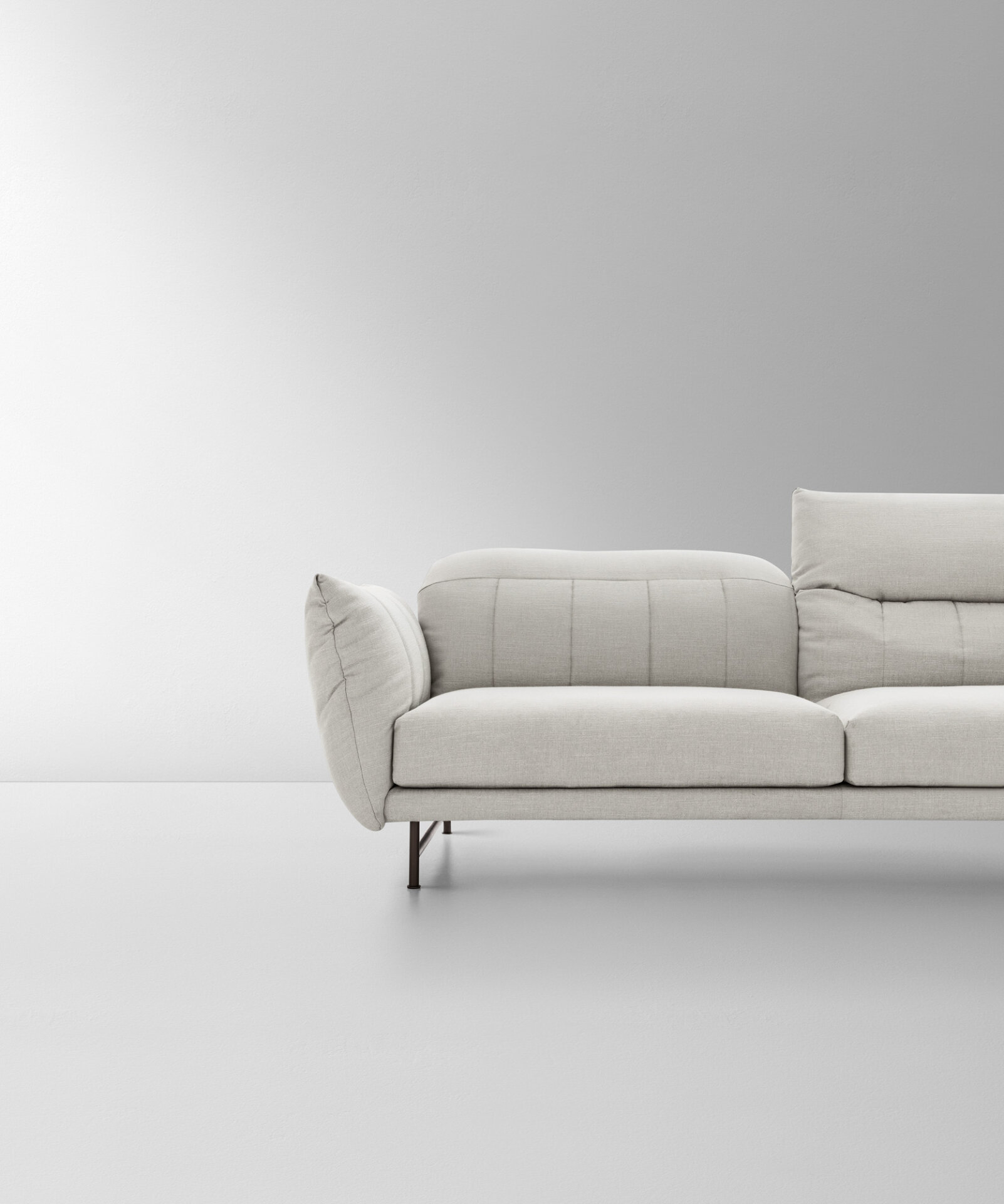 On Line沙发的特点是勾勒扶手和靠背衬垫的垂直线条图案。除了为软垫增添一丝优雅外,它还从视觉上提升了舒适度,并可通过调节靠背和扶手确保最佳的定制舒适度。该沙发还提供无垂直缝线的On Line Plain版本。