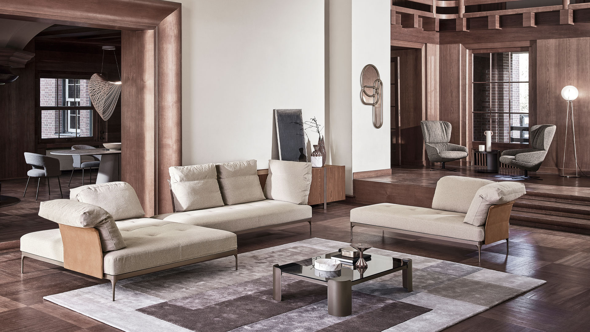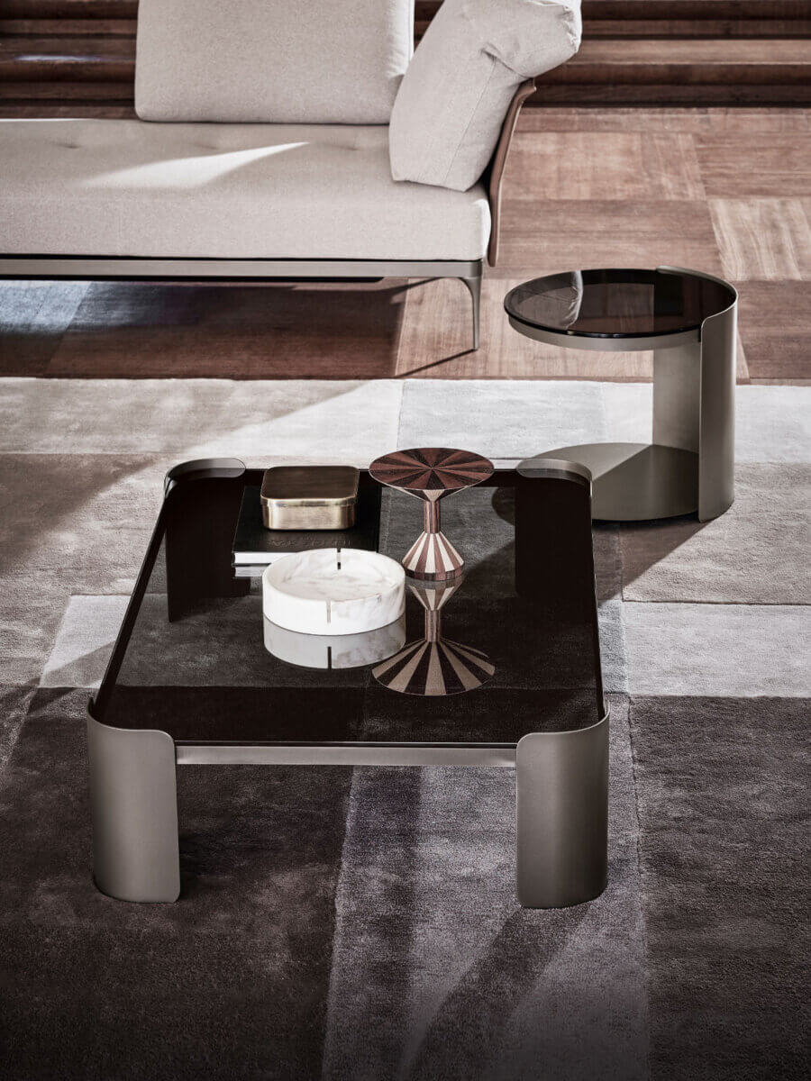 Daniele Lo Scalzo Moscheri将一块薄金属板经激光切割后折叠,变成了一款绝无仅有的极具线条感的茶几。就连名字Skin也强调了其简洁和低调,这些特点使其与该系列中的各款沙发都能和谐匹配。