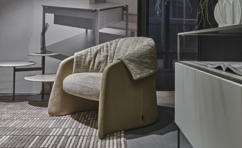 To enrich the compositions, the armchairs: 356 and Blazer, designed by Daniele Lo Scalzo Moscheri; Loto, designed by Stefano Spessotto.